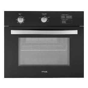 Forno de embutir a gás Stelar Topazio Preto com capacidade de 46 litros, grill elétrico, timer de 0 a 120 minutos, temperatura até 250°C e revestimento interno antiaderente.Timer