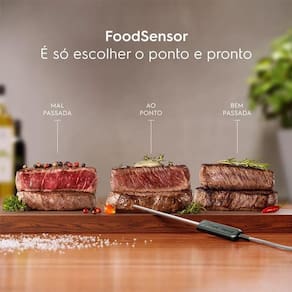 Prático termômetro queidentifica a temperatura internadas carnes, permitindo quevocê ajuste de forma precisa oseu ponto preferido