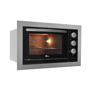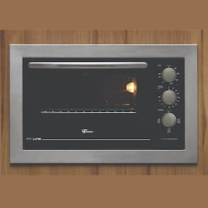 Forno de embutir elétrico com 48L de capacidade, controle eletromecânico, timer programável de até 120 minutos com aviso sonoro, 3 funções de assado (superior, inferior e total), isolamento térmico total, porta com vidro duplo, interior autolimpante, lâmpada interna protegida por vidro, frontal em aço carbono pintado, puxador em alumínio anodizado escovado, grade cromada removível e bandeja para resíduos esmaltada removível.Forno autolimpante