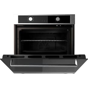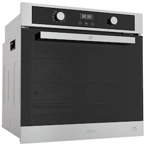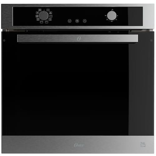 Forno de embutir elétrico Oster semi digital Black Inox com 74 litros de capacidade, painel touch, 10 funções programáveis, convecção, função ECO, ajuste de altura da grade, timer programável até 10 horas e desligamento automático.Timer