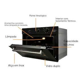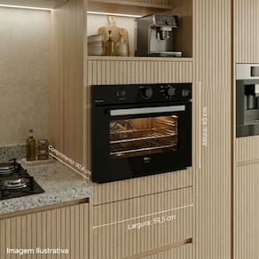 O sistema de resfriamento interno ajuda a evitar excesso de temperatura no nicho de instalação, garantindo maior segurança e preservação do móvel onde o forno está instalado.