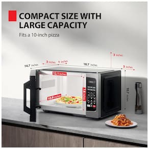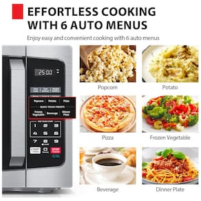 O Forno de Micro-ondas Pequeno Toshiba MLEM09PASS é perfeito para apartamentos e dormitórios. Com 6 menus automáticos, função de silenciar, trava de segurança infantil, iluminação LED e um prato giratório removível de 27 cm. Este micro-ondas de 900 watts oferece 11 níveis de potência, permitindo maior flexibilidade culinária. Com capacidade de 25,48 litros, é ideal para descongelar, cozinhar e até mesmo ferver líquidos. Possui modo silencioso, função de descongelamento rápido e 26,92 cm de diâmetro. A segurança da criança de dois passos impede o uso acidental. Dimensões externas de 47 x 37,3 x 27,2 cm (LxPxA) e internas de 30,7 x 27,7 x 19,3 cm (LxPxA) com inclusão do prato giratório de vidro.