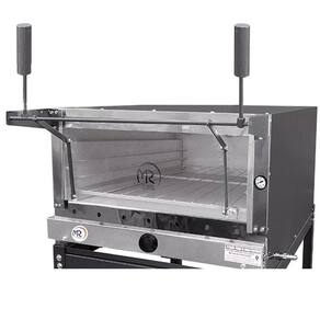 Possui porta com abertura tipo guilhotina de vidro temperado, para maior segurança ao manusear o forno de assar pizza, moldura frontal em aço inoxidável e termômetro frontal para acompanhamento das informações. Também possui capacidade para atingir a temperatura de 350 a 400C.