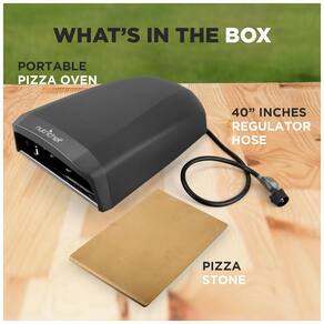 Portátil, alimentado a gás, ignição integrada, controle de calor ajustável, pés dobráveis, queimador de gás, pedra de pizza, atinge até 500°C, monta em minutos sem ferramentas.Vendido e entregue por Ecletiq