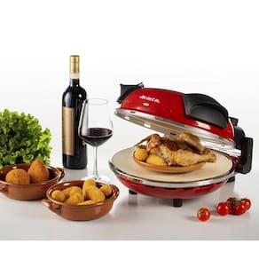 Forno de Pizza e Massas Ariete Elétrico Portátil Smart 1200W Voltagem: 127v Cozinhe pizza em 4 minutos com o Forno Pizza Ariete O forno de pizza Ariete será o aliado da cozinha de todos os amantes de pizza. O produto melhora seu desempenho com uma placa de pedra refratária de alta qualidade com diâmetro de 32cm que permite cozinhar e/ou aquecer pizza e focaccia em cinco níveis de cozimento, até uma temperatura máxima de 400 graus . A pedra refractária está equipada com um tratamento antiaderente transparente que torna a pedra refractária super resistente a manchas e resíduos e permite manter a qualidade da pedra ao longo do tempo.