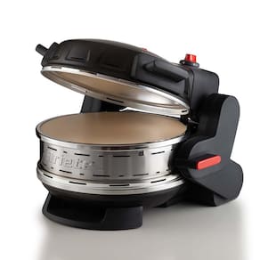 Em ambas as zonas de cocção, as pedras refratárias de 32 cm estão equipadas com um tratamento antiaderente transparente que facilita a limpeza da pedra, pois os resíduos e o óleo são removidos com mais facilidade. O forno para pizza permite assar ou aquecer pizzas e focaccias em 5 níveis de cocção até uma temperatura máxima de 400C.