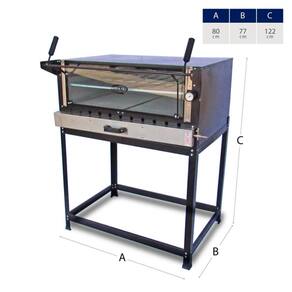 - Forno para pizzas, bolos, pães e similares;- Sistema de abertura total do vidro tipo guilhotina com contra peso;- Bandeja coletora de resíduos em chapa galvanizada super-resistente;- Acompanha uma grade reforçada por câmara;- Queimadores com sistema de gaveta, e aço tubular, com regulador de entrada de ar para uma chama mais perfeita;- Câmara com três trilhos de apoio para regulagem de altura das esteiras;- Isolamento em lã de vidro;- Abertura total do vidro;- Pés super-resistentes e piso em pedra refratária;- Termômetro na lateral do forno.