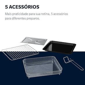 Versatilidade: Permite fritar sem óleo e assar por convecção, oferecendo diversos preparos em um único produto.