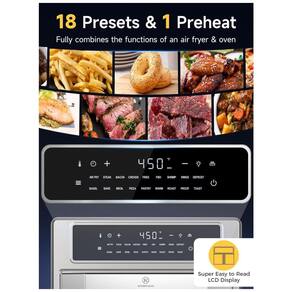 Versatilidade 18 em 1 e Cozinha Facilitada: Nossa Air Fryer oferece 18 modos de cozimento predefinidos, adaptados às suas necessidades diárias. A função de pré-aquecimento dedicada garante que seus pratos comecem a ser cozinhados no ponto certo, enquanto a luz interna do forno ajuda a monitorar o progresso das receitas. Inclui uma predefinição especial para Bagel, pensada para atender aos gostos dos consumidores americanos.
