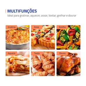 Multifunções: Versátil, pode ser utilizado para aquecer, assar, tostar, gratinar, grelhar e dourar de maneira rápida e eficiente.