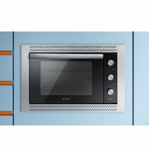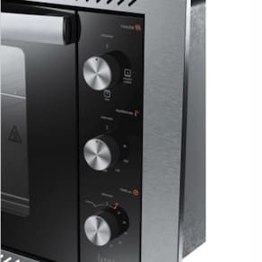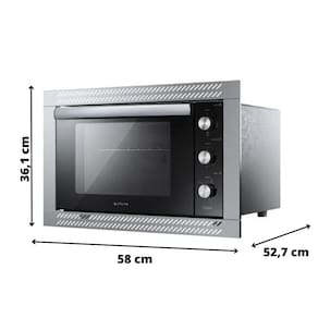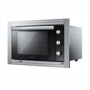 Forno elétrico de embutir com capacidade de 44 litros, potência de 1.750W, timer com desligamento automático, vidro duplo removível, isolamento térmico e multifunções (bolos, massas, carnes, grill).Timer