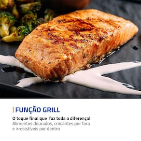 Função Grill: Perfeita para gratinar queijos e finalizar receitas com um dourado uniforme e textura crocante.