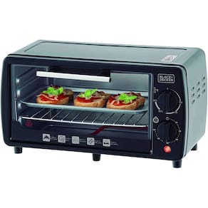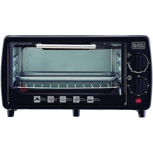 Forno elétrico de mesa com capacidade de 9L, potência de 800W, temperatura ajustável até 250°C, timer de 60 minutos e duas resistências (superior e inferior).Forno autolimpante