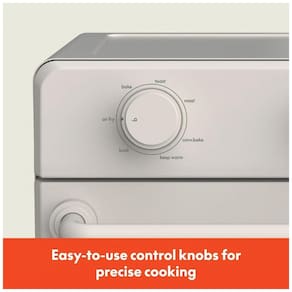 A porta de vidro temperado com puxador antitérmico garante segurança e facilidade durante o uso. A circulação de ar quente por convecção promove cozimento homogêneo e mais rápido. Todos os acessórios são removíveis e compatíveis com lava-louças, facilitando a limpeza. Design compacto, acabamento fosco e cantos arredondados valorizam o ambiente, além de contar com pés antiderrapantes e armazenamento para o cabo de energia, otimizando o espaço na bancada.