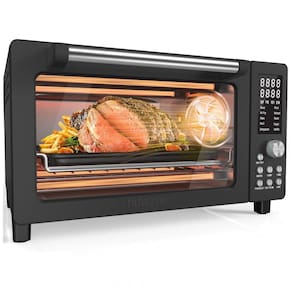 Possui controle digital touch intuitivo com display interativo que permite ajuste preciso da temperatura entre 10°C e 232°C com incremento de 3°C, além de temporizador programável de até 24 horas. A tecnologia patenteada Quick & Even Crisp e Linear T™ Heat garantem preparo uniforme sem pontos frios, mesmo em múltiplos níveis, eliminando a necessidade de virar os alimentos.