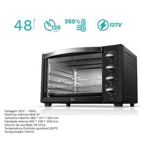 Forno Elétrico Bel Eletrodom 48L 1600W com Espeto Giratório Preto - BEL48D - 110V