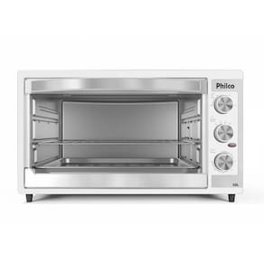 Forno elétrico Philco 50L branco, com dupla resistência, timer de 60 minutos, temperatura ajustável de 100°C a 230°C e grelha deslizante em inox.Timer