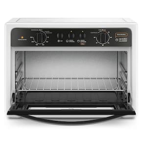 Seu design moderno deixa a cozinha ainda mais bonita. Na cor branca, o Forno Elétrico de Bancada BC44B acompanha puxador metálico e vidro transparente removível que facilita a visualização das suas receitas e a limpeza.