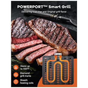 Tecnologia Power Port: A grade antiaderente é equipada com bobinas de aquecimento para uma cobertura uniforme de calor, garantindo um grill direto sem a necessidade de ventilação. Ideal para resultados de grelha perfeitos e uniformes.