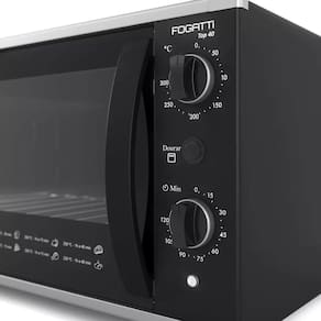Forno elétrico de bancada Fogatti Top 40 com 40 litros, interior Easy Clean, timer de 120 minutos, controle automático de temperatura, dourador (grill) e pés antiderrapantes.Forno autolimpante