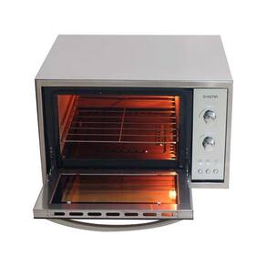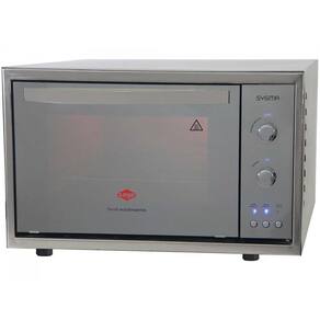 Especificações técnicas: Gabinete externo em aço inoxidável. Gabinete interno com revestimento autolimpante. Termostato automático de 50 a 300 C. 02 Resistências blindadas (sup.750w. e inf. 1.000w) com controles independentes. Porta de vidro duplo cristal espelhado. Isolamento térmico duplo. Timer de 0 a 120 minutos. Lâmpada interna com vidro protetor. Visor de temperatura iluminado. Prateleira removível em 03 posições. Bandeja esmaltada para resíduos. Instalação elétrica certificada pelo INMETRO.