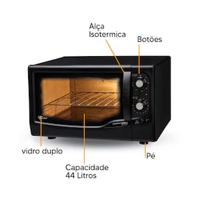 Disponível nas versões branco, prata, black e inox, o forno combina estética e funcionalidade, sendo ideal para diversos estilos de cozinha. Com capacidade de 44 litros e potência de 1775W, ele é perfeito para assar, dourar, gratinar, tostar e aquecer alimentos com eficiência.
