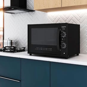 Forno elétrico de bancada fogatti top 60 black 220v Quando o assunto é forno, a fogatti dá um show. Com 60 litros, o forno top 60 black é muito prático e moderno, um forno de bancada que possibilita o preparo de diversos pratos. Possui timer de 120 minutos, possibilitando uma programação eficaz para seus pratos e assados. A bandeja e grade são removíveis. O controle de temperatura permite escolher a temperatura desejada até 300c. Além de possuir o dourador, que doura seus alimentos e os deixa com aspecto muito mais saboroso. Seu interior é esmaltado easy clean, que facilita a limpeza. Traga mais versatilidade para sua cozinha com os fornos fogatti. Características: - capacidade 60 litros - timer de 120 minutos - termostato até 300c - bandeja para resíduos - grade interna - luz interna - lâmpada com protetor - luz piloto indica se o forno está ligado - grill e dourador - interior easy clean, esmaltado - isolamento térmico Dados técnicos: - voltagem: 110v - corrente: 8 a - potência total: 1750 w - consumo: 1,2 kwh - potência da resistência superior: 750 w - potência da resistência inferior: 1000 w - tomada: 10 a - tipo de forno: forno de bancada - temperatura: 300 c - capacidade: 60 litros - com material autolimpante: não - com temporizador: sim - com grill: sim - com convecção: não - tipo de painel de controle: mecânico - medidas externas lxaxp : 57,6x41,3x45,2 cm - medidas internas lxaxp : 45x27x37,7 cm - peso: 11,5 kg - garantia: 12 meses Conteúdo da embalagem: - forno elétrico bancada fogatti top 60 - bandeja de migalhas - manual de instruções Aqui você está em 1º lugar