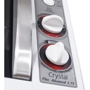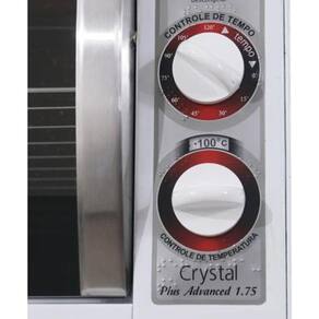 Forno elétrico de bancada com 46 litros de capacidade, 1750W de potência, termostato de precisão (50°C a 300°C), 2 resistências blindadas (superior 750W, inferior 1000W), timer de 0 a 120 minutos, lâmpada interna, puxador em aço inox, porta de vidro cristal temperado removível, isolamento térmico em lã de vidro, aparador para resíduos e 1 prateleira removível em 3 posições.Forno autolimpante