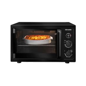 Forno elétrico de bancada com 50L de capacidade, 1800W de potência, grill dourador, luz interna, timer com autodesligamento e função manter aquecido. Interior Total Clean e isolamento térmico inteligente.Forno autolimpante