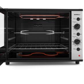 Forno elétrico de bancada Nardelli Smart 60L, com timer de 120 minutos, temperatura até 300°C, dourador, interior Easy Clean, pés antiderrapantes e isolamento térmico.Forno autolimpante