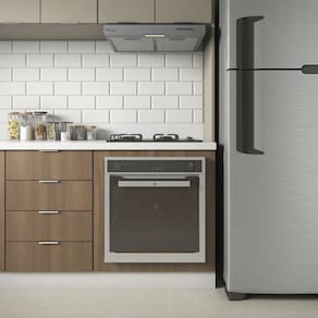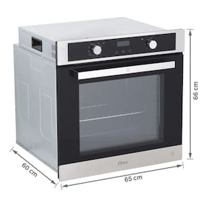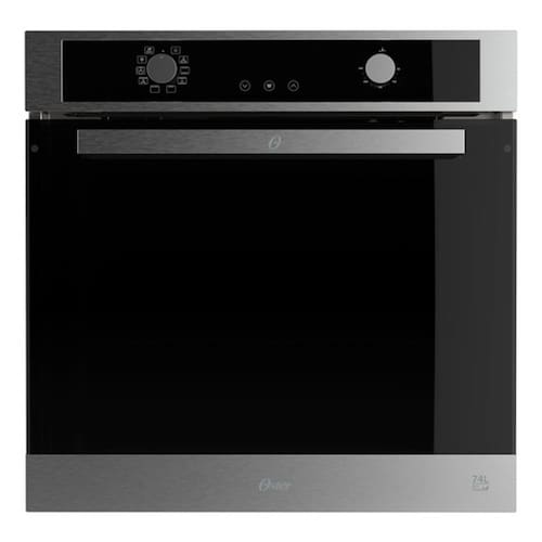Forno elétrico de embutir Oster com capacidade de 74 litros, potência máxima de 3050W, grill, timer com desligamento automático e luz interna.Timer