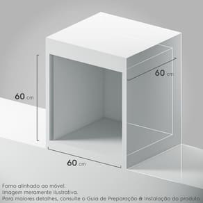 Fabricado em aco na cor preta, apresenta um design moderno que combina com qualquer estilo de decoracao. As dimensoes sao 59,6 cm de altura, 59,6 cm de largura e 61,3 cm de profundidade, sendo perfeito para instalacao em espacos planejados. Acompanha grade, permitindo o uso imediato apos a instalacao.