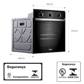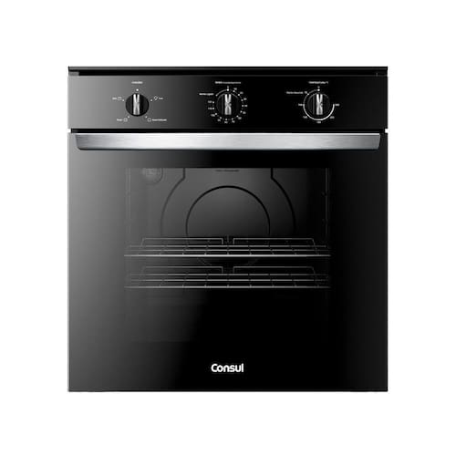 Forno Elétrico de Embutir Consul COB84BE com capacidade de 84L, timer com desligamento automático, revestimento esmaltado, função grill e duas prateleiras com 5 alturas.Timer