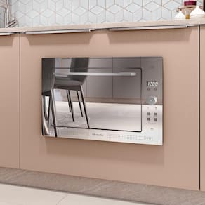 Forno Elétrico Digital de Embutir Mueller 50 L Espelhado (MFE50L): acabamento espelhado de alto padrão, painel digital touch com função programar (liga e desliga automaticamente), duas resistências de 900 W (superior e inferior), faixa de temperatura de 100 C a 300 C, modo grill, interior com esmalte Total Clean, porta de vidro duplo com isolamento térmico e timer com alarme sonoro.