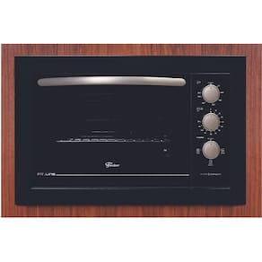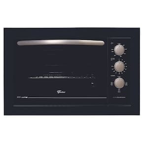 Forno elétrico de embutir Fischer Fit Line com capacidade de 48L, timer de até 120 minutos, controle de temperatura de 50°C a 320°C, corpo autolimpante e porta com vidro duplo.Timer