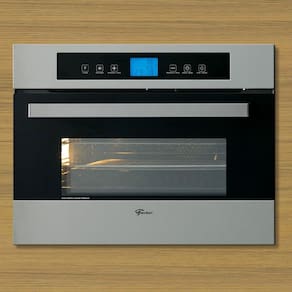 O Forno Elétrico Fischer Platinium de Embutir apresenta design sofisticado, com controle touch screen (sensível ao toque), programação com 8 funções, dourador, corpo interno esmaltado em easy clean, porta com vidro duplo e acabamento em aço inox escovado. Seu sistema de turbo convecção distribui o calor uniformemente ao assar, gratinar e aquecer, ideal para qualquer tipo de alimento. Comporta dois tipos de assado simultâneo. Possui sistema de resfriamento interno do forno, que evita excesso de temperatura no nicho de instalação.