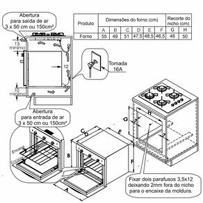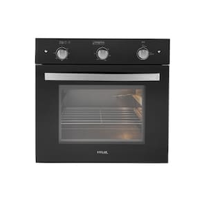 Forno elétrico de embutir Stelar com capacidade de 55 litros, 1750W de potência, porta com vidro duplo temperado, interior antiaderente, grill superior, timer de 0 a 120 minutos e temperatura regulável até 250 graus. Acompanha prateleira deslizante.Timer