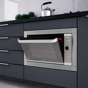 O Forno Elétrico Decorato Gourmet Inox é pura sofisticação e tecnologia em sua cozinha. Com painel touch, display digital e o botão seletivo, permite que você tenha total controle das funções para o preparo das suas receitas. Além de fácil programação das funções, o forno conta com preaquecimento automático, ele avisa a hora certa de iniciar seu assado com um sinal sonoro, garantindo a precisão que você procura. O forno também conta com a função manter aquecido, para suas receitas sempre quentinhas na temperatura ideal. É completo e oferece comodidade e mais segurança para o seu dia a dia, com duplo estágio na porta, vidro duplo e isolamento térmico total. E para deixar tudo ainda mais prático à moldura com grade de ventilação sai montada de fábrica, facilidade de instalação em um só nicho, ocupando menos espaço no seu móvel.