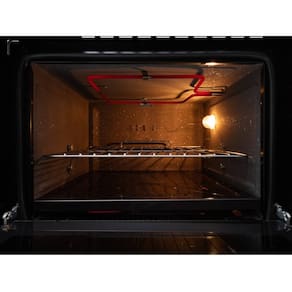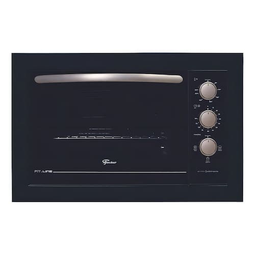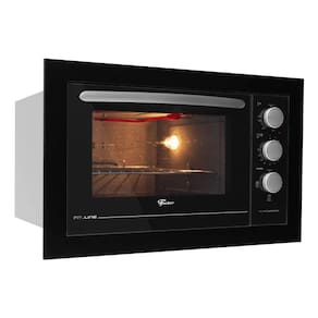 Forno elétrico de embutir com 48 litros de capacidade, grill integrado, timer programável e acabamento em preto.Timer