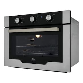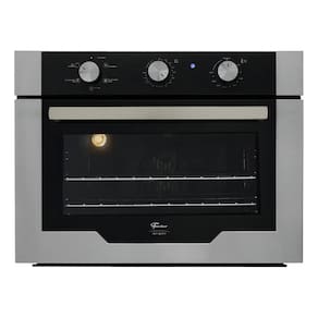 Forno elétrico de embutir com acabamento em inox escovado, tecnologia Turbo Convection para distribuição uniforme de calor, grill, timer programável e capacidade de 50 litros.Timer