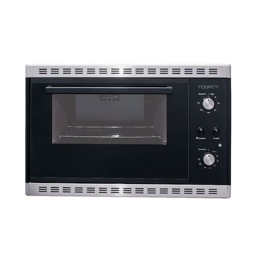 Forno elétrico de embutir Fogatti ESI Inox com capacidade de 45 litros, timer de 120 minutos, termostato até 300°C, interior autolimpante, grill e dourador.Timer