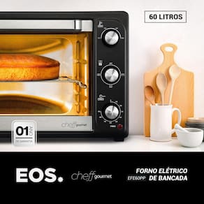 O Forno Elétrico EOS 60 Litros EFE60PP oferece uma preparação de refeições mais eficaz, graças à sua potência de 2000W, que garante resultados rápidos e precisos. Com 60 litros de capacidade, ele permite assar, grelhar e cozinhar sem restrições. A função Grill proporciona crocância às refeições, e o design facilita a limpeza e elimina odores indesejados. O timer integrado permite relaxar durante o preparo das refeições, desligando automaticamente ao final do tempo programado. Durável, com grades internas de inox resistentes à ferrugem, e com um seletor de temperatura ajustável até 250C, este forno oferece controle total sobre o cozimento e transforma a experiência culinária. As principais vantagens incluem alta potência, amplo espaço, função Grill, praticidade, durabilidade e maior controle no preparo dos alimentos.