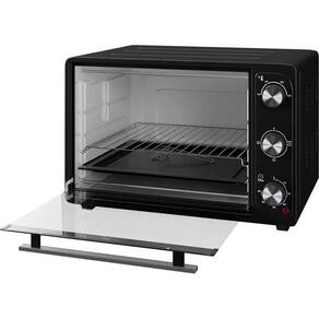 Conteúdo da embalagem: 1 Forno Elétrico 1 Bandeja Coletora Removível 1 Grade deslizante 1 Puxador para a grade deslizante / Bandeja 1 Manual de Instruções