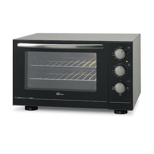 Uma das linhas mais tradicionais da fischer recebe um novo modelo: o forno elétrico fischer turbo 2.4 new de bancada 48l. O novo modelo é turbo e possui programação de três funções que otimizam o tempo de preparo dos alimentos: turbo, turbo mais, e dourar/gratinar. Possui luz interna, luz piloto, termostato de 50ºc a 300ºc, timer para programação de até 120 minutos com a opção de ficar ligado continuamente. Com design moderno, o forno elétrico fischer turbo 2.4 new, traz suporte de grade cromada com quatro ajustes de altura, duas grades cromadas, bandeja esmaltada para resíduos, a cavidade interna é com revestimento em easy clean proporcionando fácil limpeza. Além disso, traz um acabamento em alumínio anodizado escovado no puxador. Conteúdo da embalagem: manual de instruções, 2 grades cromadas, e 1 bandeja esmaltada para resíduos. Bancada 48 2/2 rev. Garantia: 12 meses Voltagem: 127v Peso: 24000 Largura(cm):62 Altura(cm):42 Comprimento(cm):55