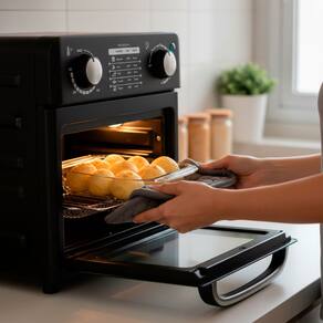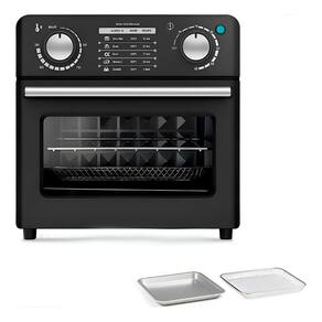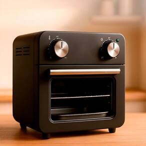 Cozinhe de forma mais rápida, saudável e deliciosa!Oeletrodoméstico multifuncional que une a versatilidade de um forno compacto com a tecnologia saudável da fritadeira a ar.- Painel intuitivo e visor transparente.-Graças ao seu sistema de circulação de ar quente em alta velocidade, este forno frita seus alimentos favoritos utilizando pouco ou nenhum óleo.-Seu tamanho é ideal para bancadas, e a porta de vidro temperado permite acompanhar o cozimento com segurança.Especificações Técnicas:- Material: Alumínio/Componentes elétricos/Vidro- Dimensões Aprox.: 23cm (ALTURA) x 22cm (LARGURA) x 21,5cm (PROFUNDIDADE)- Potência: 1000W- Capacidade: 10L- Cor: Preto- Temperatura: até 230°C- Timer: até 60min- Frequência: 60Hz- 3 bandejas: Grelha, cesto e assadeiraItens Inclusos:- 01x Forno elétrico- 03x Bandejas Marca: Não Informado