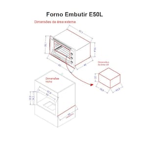 Design moderno, alta performance e precisão no preparo. Capacidade de 50 Litros. Termostato até 300°C. Timer de 120 minutos com desligamento automático. Grill e dourador. Interior antiaderente. Isolamento térmico reforçado. Luz interna e luz piloto. Porta com abertura em dois estágios. Moldura em aço pintado com ventilação integrada.Forno autolimpante