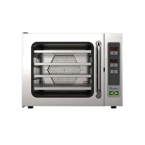 Forno eletrico industrial de convecção assador bancada miniconv sem vapor prática Voltagem: 220v O forno miniconv sv da prática é o equipamento ideal para o seu negócio. perfeito para o preparo de doces, pães franceses, bolos, salgados, biscoitos e muito mais. Com capacidade para até 4 assadeiras de 35x35 cm, o miniconv sv garante assamento uniforme por meio de uma turbina de alta performance, que distribui o calor de maneira homogênea por toda a câmara, elevando a qualidade da sua produção. O forno conta com isolamento térmico eficiente e aquecimento por resistência blindada, atingindo temperaturas de até 210c. Fabricado em aço inoxidável, possui design compacto e empilhável, ideal para verticalizar sua produção e aproveitar melhor o espaço disponível. É indicado para lojas de conveniência, padarias, lanchonetes, cafés, bistrôs e cozinhas gourmet. O miniconv sv também é fácil de operar, com um painel simples e intuitivo, que permite o armazenamento de até 100 receitas, que podem ser compartilhadas via usb. Características: - convecção com circulação de ar por turbina de alta performance. - controle de temperatura de 0c até 210c. - isolamento de alta performance. - pés ajustáveis. - aquecimento por resistência blindada. - empalhável: máximo 1 equipamento 1 + 1 - uso eficiente de energia. - construído em aço inoxidável. - distância entre as assadeiras: 70 cm - marca: pratica Informações técnicas: - 220v monofásico - potência: 2,56 kw - frequência: 52/60 hz Dimensões: - comprimento: 68 cm - largura: 58 cm - altura: 44 cm - peso: 29 kg Itens inclusos: - 01 forno eletrico miniconv sv pratica - 04 assadeiras perfuradas 35x35 cm - 01 manual de instruções Informações importantes: Comprando conosco, sua compra será enviada muito bem protegida, além de possuir . Toda compra é enviada o mais rápido possível, no prazo máximo de 1 dia útil. Nós da dalia pro temos compromisso com a rapidez : 1 ano de , oferecida pela marca prática.