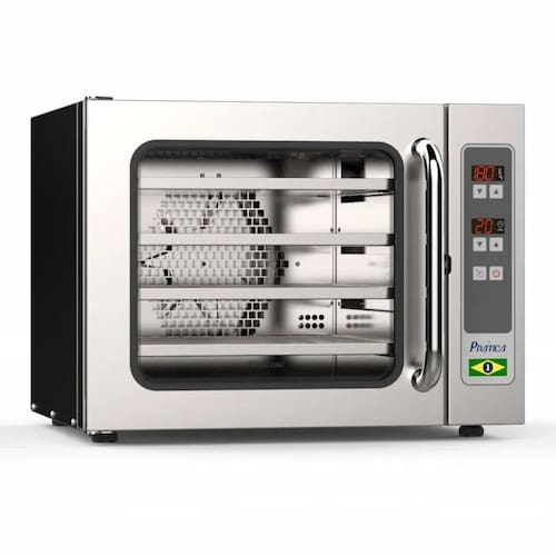 Com capacidade para 4 assadeiras de 35x35cm o Miniconv eleva produções iniciantes a um nível profissional. Fácil de operar: possui um painel simples e intuitivo. Possui opção com vapor: conta com uma função que injeta vapor na câmara, o que auxilia na produção de pães de qualidade.