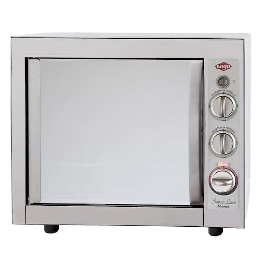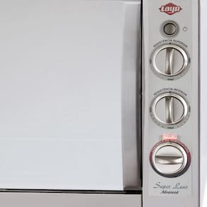 O forno Super Luxo tem capacidade para até 46 litros. Esse forno elétrico, da Layr, tem isolamento térmico total com lã de vidro, duas chaves de controle da temperatura e visor iluminado de temperatura, porta removível de vidro cristal temperado, prateleira removível em 3 posições e bandeja para resíduos. Possui corpo externo em aço inoxidável e interno com revestimento autolimpante, vem com termostato automático de precisão, que vai de 50º até 300º, assim você consegue preparar as mais variadas receitas.