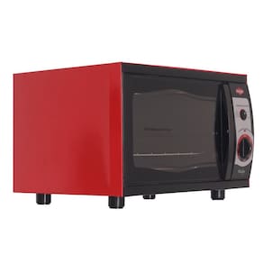 Gabinete externo em acabamento vermelho; Gabinete interno com revestimento easy-clean; Termostato de precisão 50ºC a 300ºC; 02 Resistências blindadas (1 superior 500w e 1 inferior 800w); Dourador; Lâmpada do termostato; Porta removível de vidro cristal temperado; Isolamento térmico com lã de rocha; Prateleira removível em 2 posições; Instalação elétrica certificada pelo INMETRO. O gabinete externo vem protegido com uma película plástica branca, azul ou transparente de proteção e deverá ser retirada no momento do primeiro uso.Forno autolimpante